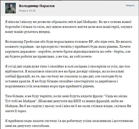 предположить, что призыв Парасюка на свержение власти Януковича был одобрен