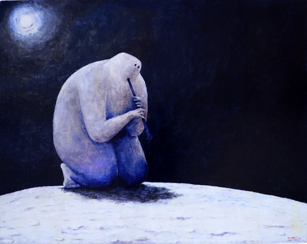 «вакуумном одиночестве» синий человечек играет на свирели. Поскольку