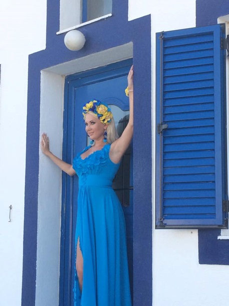 Патріотична фотосесія Заслуженої артистки України Катерини Бужинської на о. Санторіні у Греції
