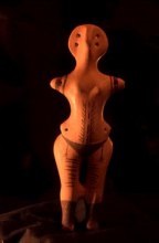 розписаного фарбами, на ньому стояв культовий посуд і глиняні жіночі фігурки.