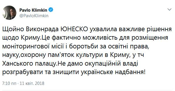 В феврале Украина передала ЮНЕСКО подробный анализ проблем, связанных с российской оккупацией Крыма.