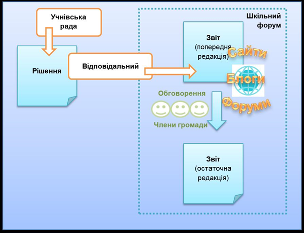 керування процесом освітянськими менеджерами до власне самоврядування учнів;