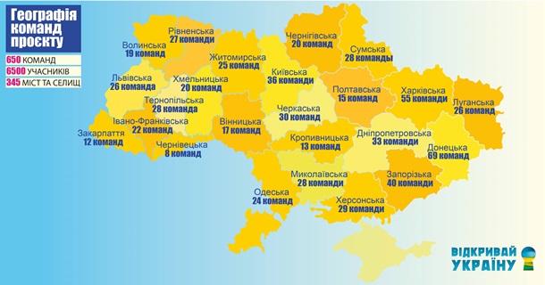 ● 650 зареєстрованих команд із 345 міст та селищ України;
