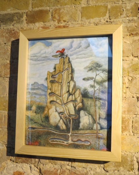 Лично меня поразила авторская находка, когда в структуру произведения искусства "вживляются" биологические объекты! Так, в одной из работ в раме под стеклом, по замысловатым дорожкам "блуждают" насекомые, напоминающие муравьев.