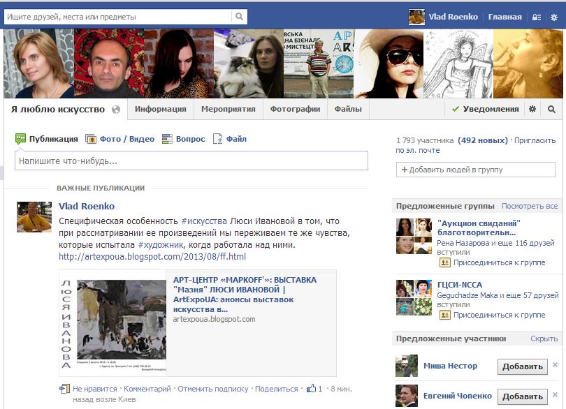 Крупнейшая в русскоязычном Фейсбуке группа ценителей искусства, Я люблю искусство, приглашает авторов готовых: