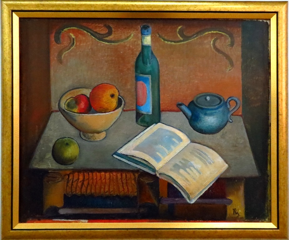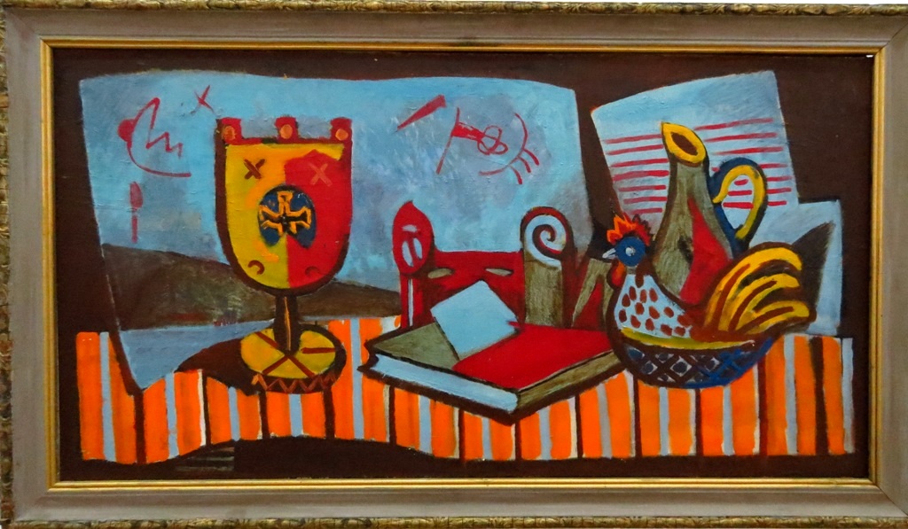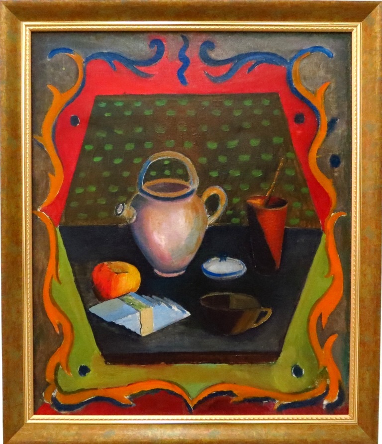 Роман Сельский, Натюрморт с подсвечником и фоном из голубых листов бумаги, 1970-е