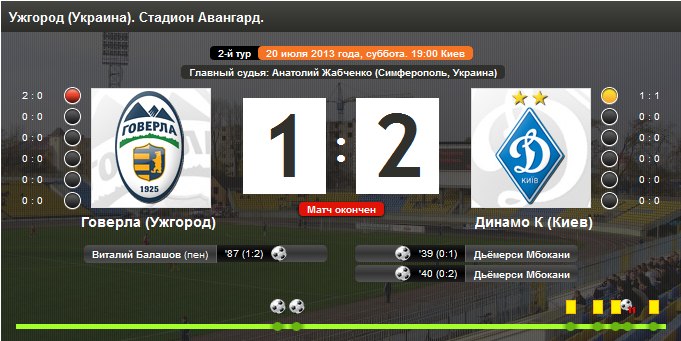 Не буду скрывать, но ужгородцы сыграли почти весь первый тайм отменно, но везение было не на их стороне: штанга от экс-динамовца Лысенко и перекладина от Трушевича. А "бело-синие", не заметно для всех, в одной из своих атак чем-то заворожили защитников и Мбокани отличился с паса Гармаша. Буквально после того, как развели мяч хозяева, Белланда перехватил мяч и Аруна запустил мяч и, вновь, Мбокани забил, и причем очень красиво, на технику так, знаете.