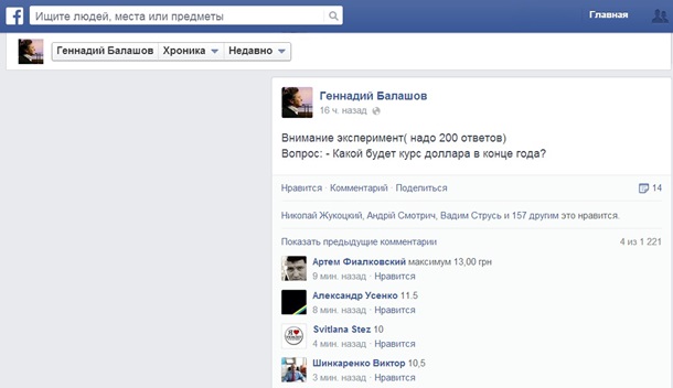 У нас есть возможность анализировать также и другие экономические факторы, потому что Facebook позволяет оперативно выяснять настроения и ожидания общества. Мы обязательно вернёмся к этому исследованию в декабре и посмотрим, насколько просто математика предсказывает экономику. Во всяком случае, я теперь ориентируюсь на такой прогноз доллара.