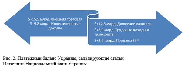 Сальдо движения инвестиционных доходов. Отток валюты из страны в виде процентов по кредитам, займам, ссудам, а также в виде дивидендов, роялти и других видов доходов от иностранных инвестиций неизбежно возрастет. Данная статья стабильно отрицательная для платежного баланса Украины, поскольку внешний долг Украины требует обслуживания, а также часть доходов от инвестиций реинвестируется не напрямую, а через компании, зарегистрированные за рубежом. Так в 2013 году баланс по этой статье был около минус $10 млрд.