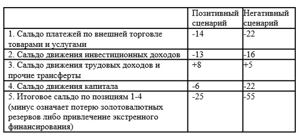 Даже если все обещания Запада будут выполнены, для сведения платежного баланса понадобится более 23 млрд.долл. Если не найдется желающих поверить в скорое экономическое чудо на Украине, то страна вынуждена будет потратить все свои золотовалютные резервы, чтобы элементарно свести концы с концами даже при благоприятном развитии ситуации по базовому сценарию, а при неблагоприятном обречена на дефолт.