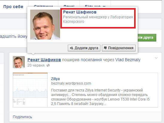 Касперського розмістив посилання на «исследование» на своїй сторінці Facebook.