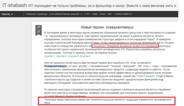 чомусь видалив текст, в якому напряму назвав Zillya! псевдоантивірусом.