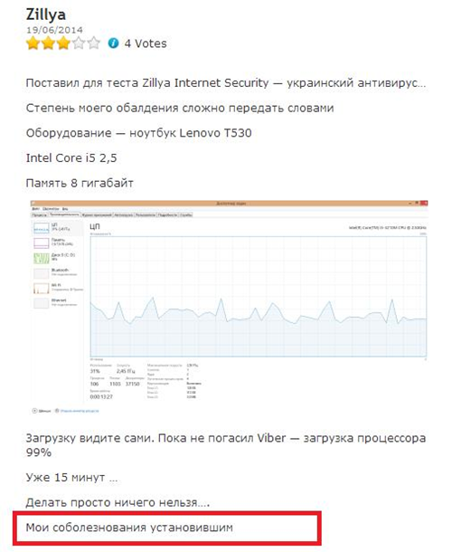 о нашем мальчике», в якій визначив, що Zillya! Антивірус є настільки повільним, що його користувачам слід лише поспівчувати!