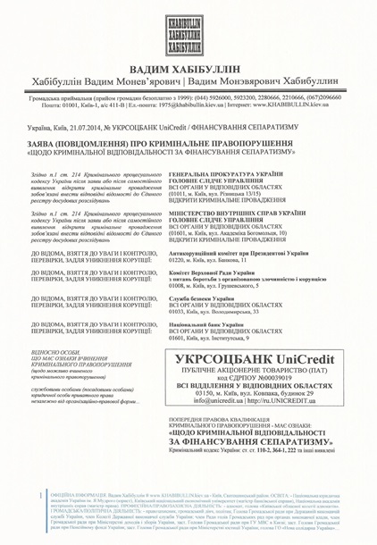 UniCredit / ФІНАНСУВАННЯ СЕПАРАТИЗМУ