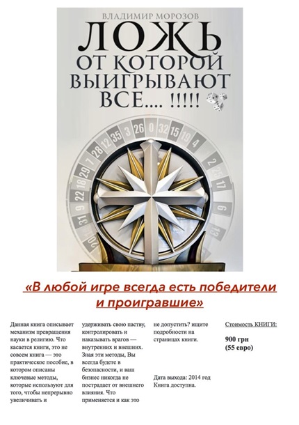 Что касается данной книги- это не совсем книга- это практическое пособие, в котором описаны ключевые методы,которые используют для того, чтобы непрерывно увеличивать и удерживать свою паству, контролировать и наказывать врагов.