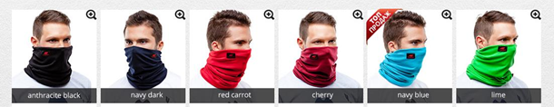 Мы начали с интернет-магазина шапок и бафов. Яркие, цветные