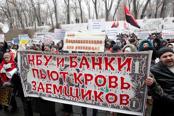 Огромная жадность банкиров и «честных» майдановских керманычей привела к уничтожению финансовой системы страны и экономики в целом. Как результат, треть банков оказались на грани банкротства, в десятки из них пришлось вводить временную администрацию и выделять (считай, печатать) новые деньги для обеспечения платежей перед вкладчиками.