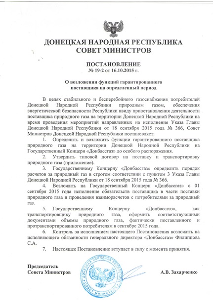 поставщиком газа ГК «Донбассгаз» во главе с Филипповым С.А. (приказ №19-2 от