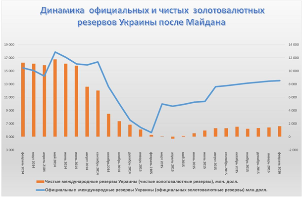 В феврале 2014 года чистые золотовалютные резервы Украины были 11,3 млрд. долл.,