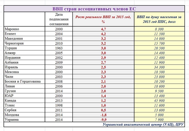 На собранные экспертные данные о состоянии экономки всех стран мира, в том числи и тех стран, который в разное время подписали соглашение об ассоциации с ЕС. Стоит обратить внимание..