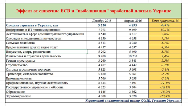 заработная плата в Украине, при более низкой ставке ЕСВ, стали ниже, чем была