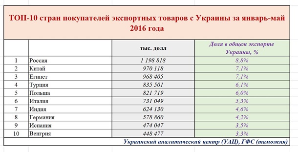 не падение экспорта в Россию, она пока остается на первом месте в этом рейтинге.
