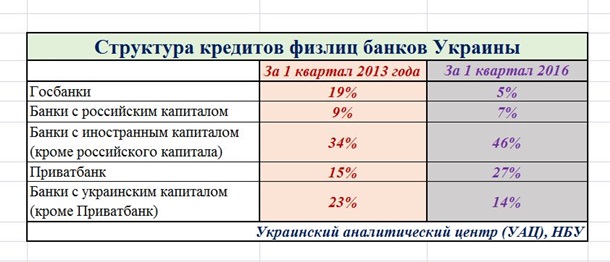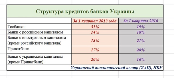 положение на рынке кредитования в Украине. Но и украинские банки с российским