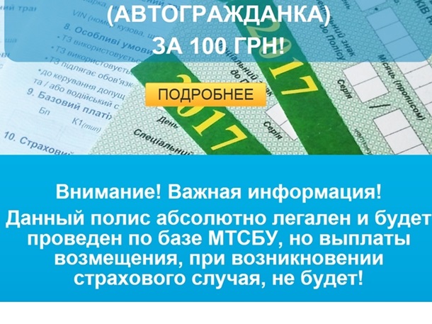 сайт, на котором предлагались якобы настоящие полисы ОСАГО по цене 100 грн. «Партнерами» проекта указывались совершенно реальные