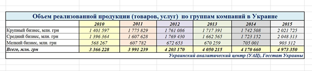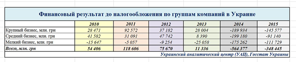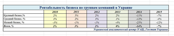 Украины в целом. Но малый бизнес у нас упрямо показывал убытки в 2010, и 2011,