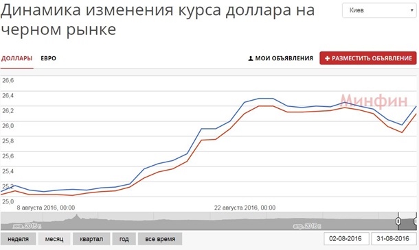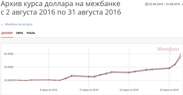 посмотреть на динамику курса гривны за август 2016 года можно заметить