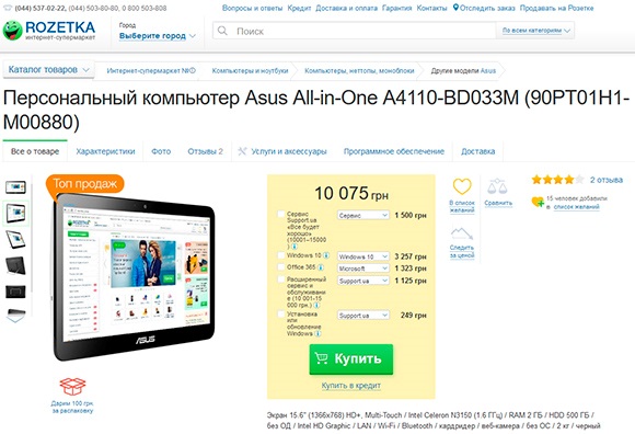 как у всех поставщиков этого моноблока его длинное название заканчивается