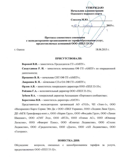 Согласно протоколу, руководитель Одесского порта Соколов М.Ю., его
