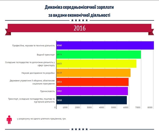 За даними Державної служби статистики, найбільшу середньомісячну зарплату в 2016 році отримували працівники, діяльність яких пов’язана з пасажирськими або вантажними перевезеннями авіа- або космічним транспортом. Їхній середній дохід за місяць склав 24688 гривень.