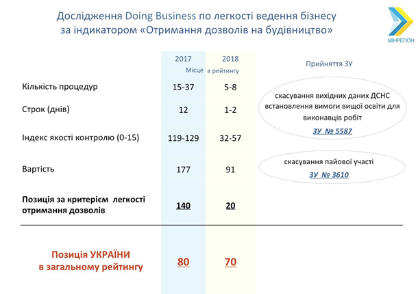 ведения бизнеса) Украина заняла 80 место из 190 стран.