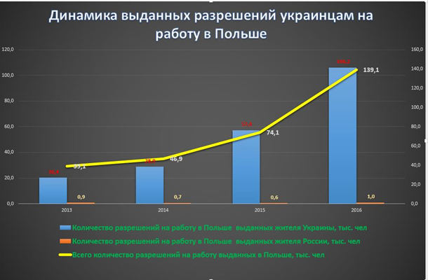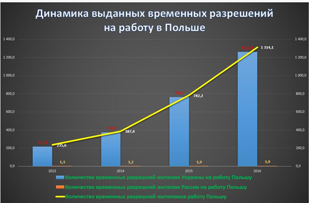 роста временных гастарбайтеров с Украины в Польше после Майдана резко выросла.