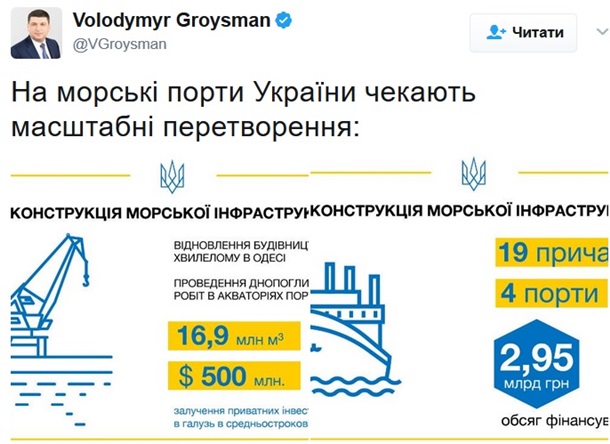 миллиардов гривен. Инвестиции в строительство поровну несли Одесский порт и