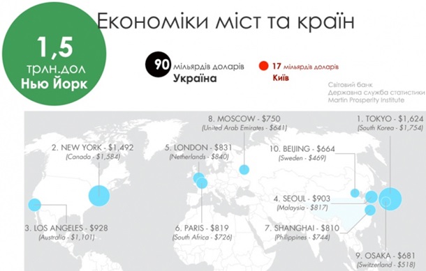 Нью-Йорк, Токіо, Шанхай, Лондон і Пекін. Київ уже зараз у 88 разів бідніший за