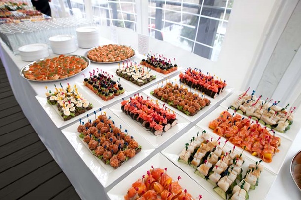 Если на мероприятии небольшое количество гостей, вы можете подготовить фуршетный стол, предложив гостям разного вида холодные закуски. В этом случае можно справиться собственными усилиями. Но при большом количестве гостей без обслуживания просто не обойтись. Для этого можете заказать услуги кейтеринга - это выездные рестораны, которые сами приезжают к клиенту в согласованное место и время. Там же заранее можете подобрать и составить меню для гостей, количество порций и обсудить все другие важные задачи.