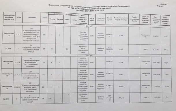 виробництва масла на загальну суму 790 000 гривень та за порушення