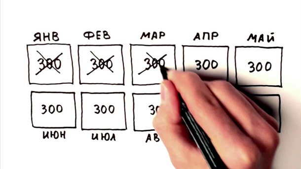 Применение рассрочки - это не только экономический, но и психологический прием: человеческая психика устроена так, что нам проще платить по 100 долларов в течение 10 месяцев, чем сразу отдать 1000 долларов.