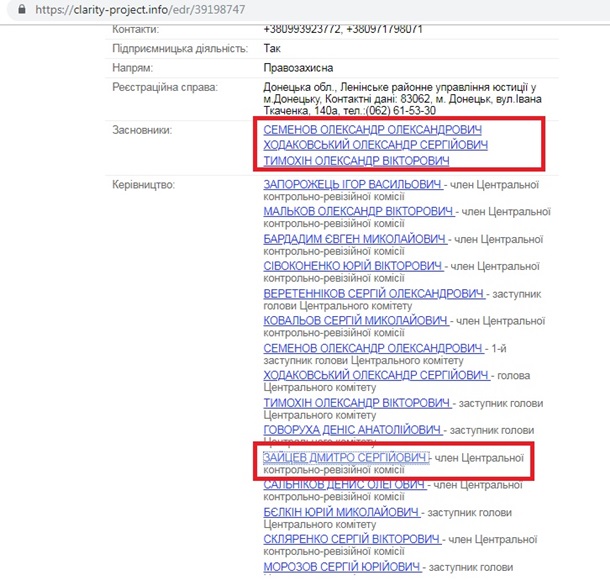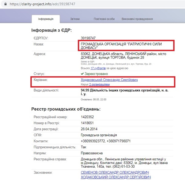 лідера сепаратистів Донбасу Ходаковського і один із засновників організації