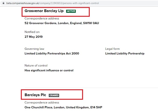 з’явився новий власник Grosvenor Barclay Llp, навпроти якого зазначено «active» -