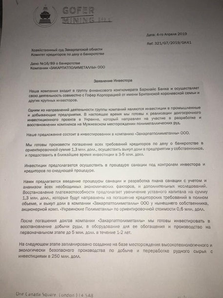 поліметалів у Закарпатті інвестує відомий англійський банк. Коли про це