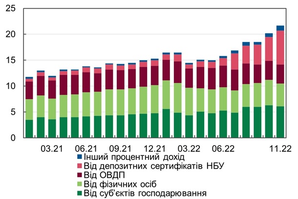 6% від загальних процентних доходів, то в листопаді 2022 – 30% (в середньому за