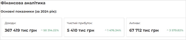 2024 рік компанія отримала 367 419 000 грн, з яких близько 157 000 000 гривень