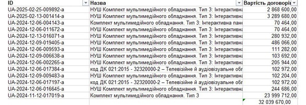 мультимедійного обладнання на понад 30 мільйонів гривень. Це досить значна сума