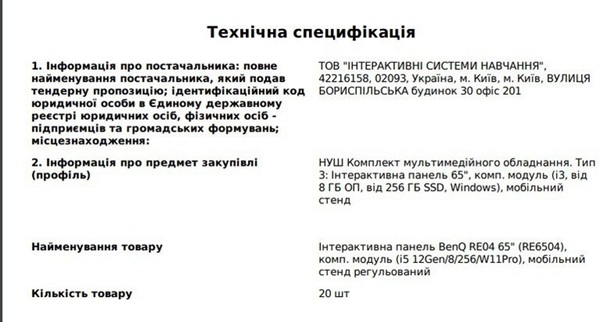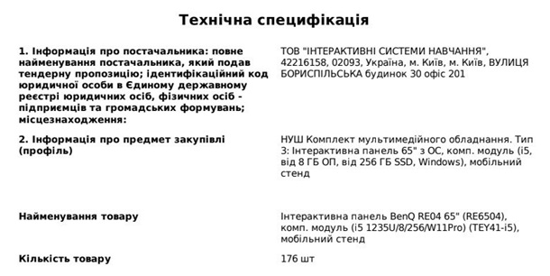 бачимо на прикладі тендеру на закупівлю 176 мультимедійних панелей BenQ для