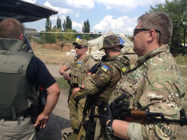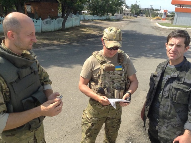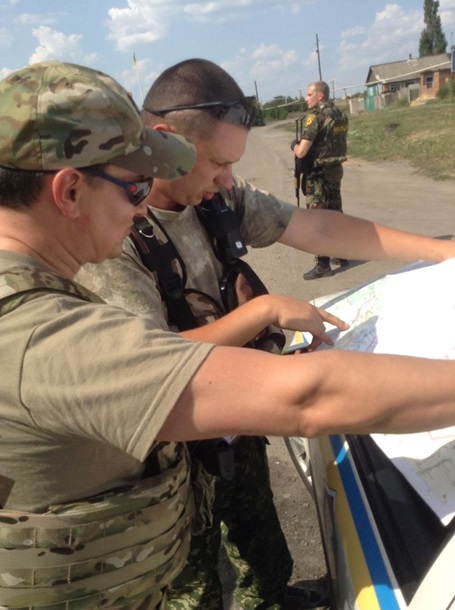 місцевими жителями, бійцями Національної гвардії, які тут несуть службу, та