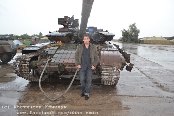 Заїжджаємо на аеродром. По бетонних доріжках гуркочуть вузькими траками БМП. На одному з майданчиків - понівечені автомобілі, з вибитим склом, фарами, пом’ятими кабінами та зірваними дверцятами. Зірвані контейнери активного динамічного захисту броні на Т-64, ушкоджені навішані умільцями в польових умовах грати на БТР, обгоріла фарба і закіптюжені борти на БМП... Одиноко стоїть 152-міліметрова «самохідка». Питаємо: «А де решта машин?» Відповідь: «Це все, що залишилося».