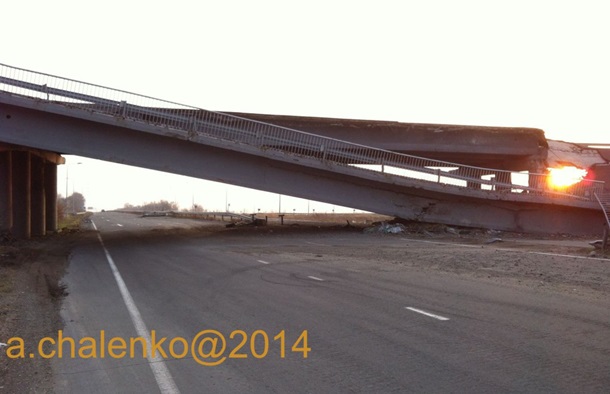 Везде следы обстрелов и пожаров. Дороги во многих местах с многочисленными выбоинами, что затрудняет движение. От дороги отходить не рекомендуют, так как можно нарваться на растяжку. Мы видели даже мост над дорогой, у которого была взорвана одна их опор. Причем таким образом, что он, упав одним концом, почти перекрыл проезжую часть. Шоферы пролетают под ним на очень большой скорости. Боятся, что он может обрушиться.